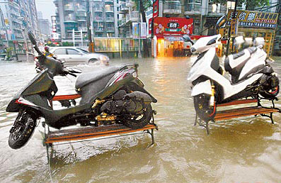 臺風(fēng)“海鷗”過境時(shí),臺灣多個(gè)縣市豪雨成災(zāi)。