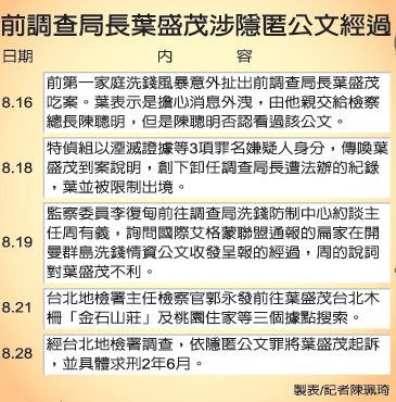 臺(tái)當(dāng)局前“調(diào)查局長(zhǎng)”葉盛茂涉隱匿公文經(jīng)過(guò)。(聯(lián)合報(bào)圖)
