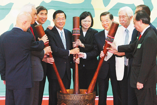 民進(jìn)黨5月21日舉行黨主席交接典禮,全黨營造團(tuán)結(jié)氣氛,但“四大天王”的蘇貞昌和呂秀蓮都缺席。謝長廷呼吁“不要到法庭才團(tuán)結(jié)”,陳水扁則連問四次“黨有團(tuán)結(jié)嗎”?(圖片來源:臺灣《聯(lián)合報》)