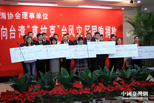 8月12日下午,海協(xié)會18家理事單位舉行“向臺灣‘莫拉克’臺風災區(qū)同胞捐款儀式”,18家理事單位共向受災臺胞捐款計1億1100萬元人民幣。(中國臺灣網 鐘寶華 攝)