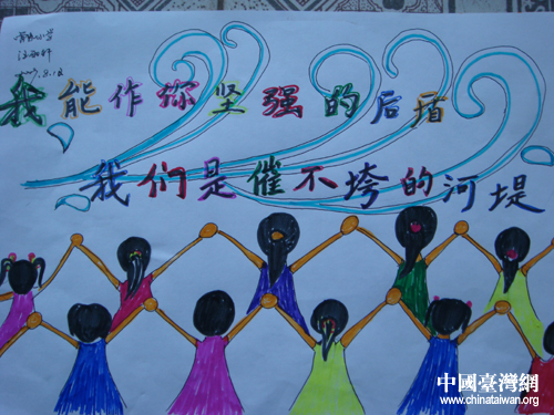 四川省廣元市朝天區(qū)曾家小學(xué)學(xué)生汪雨軒的畫作,為臺(tái)灣受災(zāi)同胞祝福。(來源 四川臺(tái)辦)
