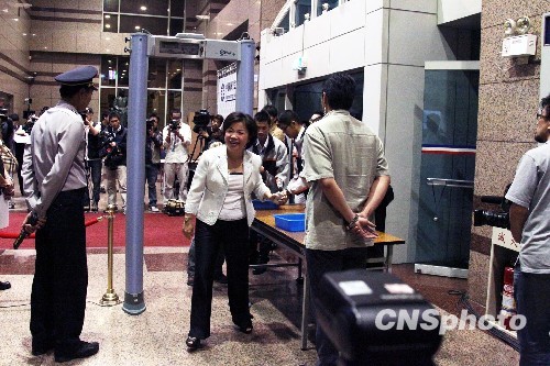 10月26日晚,中國國民黨中央在臺北召開臨時中常會,討論中常委全面補(bǔ)選事宜。圖為中常委趕赴國民黨中央黨部開會。黨主席馬英九在會中致辭表示,國民黨改革黨內(nèi)選舉風(fēng)氣,不光為了黨的前途,更是為了臺灣前途。國民黨日前舉行新一屆中常委選舉,傳出部分參選者送禮,多位中常委紛紛請辭,冀以撇清立場,也希望推動黨內(nèi)改革。(圖片來源:中新社)