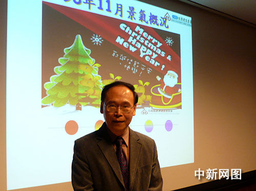 12月28日,臺灣“經(jīng)建會”舉行記者會介紹最新經(jīng)濟(jì)形勢。會上提供的臺灣多家知名研究機(jī)構(gòu)的預(yù)測顯示,臺灣明年的經(jīng)濟(jì)可望由負(fù)轉(zhuǎn)正,應(yīng)有約4%左右的正增長。圖為“經(jīng)建會”研究處處長洪瑞彬在會上接受記者提問。(圖片來源:中新社)