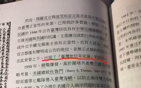 試想,當(dāng)少得只剩幾頁(yè)的中國(guó)政治史,標(biāo)題竟然是《傳統(tǒng)政治權(quán)威的形塑》;臺(tái)灣光復(fù)時(shí)期的標(biāo)題是《威權(quán)體制下的臺(tái)灣》,受這種歷史教材熏陶的學(xué)生,會(huì)形成什么樣的“中國(guó)概念”?不僅如此,在新的歷史課本中,連“臺(tái)灣地位未定論”也被提出討論,這將會(huì)對(duì)臺(tái)灣青少年造成什么樣的毒害?