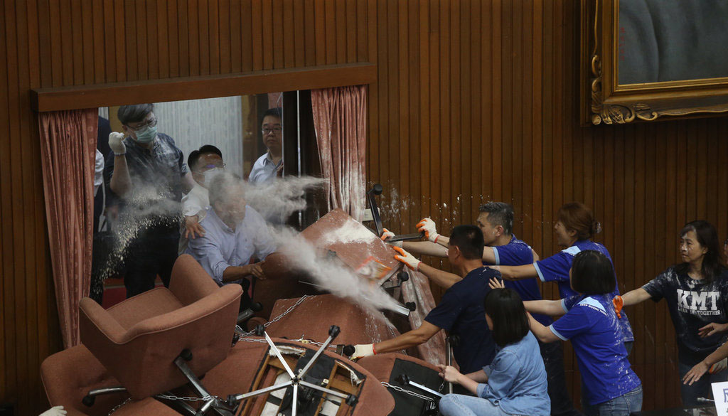 臺立法機構(gòu)藍綠混戰(zhàn)現(xiàn)場圖(圖片來源:臺媒)