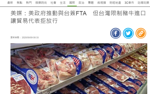 據(jù)媒體報(bào)道,美國(guó)為了捍衛(wèi)貿(mào)易利益,不排除利用民進(jìn)黨當(dāng)局?jǐn)[脫所謂“國(guó)際孤立”狀態(tài)的心理,先擒后縱,要求臺(tái)灣開放進(jìn)口美國(guó)含瘦肉精的豬、牛產(chǎn)品,作為簽訂自貿(mào)協(xié)定的前提條件。