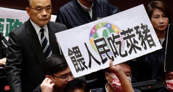 日前,為抗議進口含瘦肉精美豬政策,國民黨黨團在立法機構(gòu)議場向民進黨民意代表及行政機構(gòu)負責人蘇貞昌投擲豬內(nèi)臟。有媒體將這一日稱為臺灣立法機構(gòu)有史以來“最血腥”的一天。