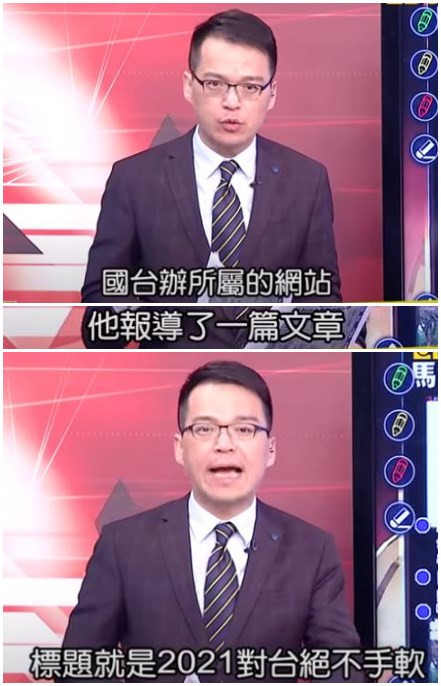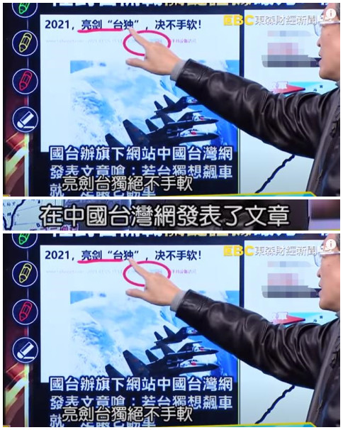首先,主持人上來就直接改標題。把《2021,亮劍“臺獨”,決不手軟!》直接簡化為《2021對臺絕不手軟》。字變少了,意思也完全相反,“亮劍”對象從島內一小撮“臺獨”勢力,變成了整個臺灣。國防部多次強調,(解放軍在臺海地區(qū)的相關演練活動)針對的是外部勢力干涉和一小撮“臺獨分裂勢力”及其分裂行徑。大陸方面同樣多次重申,愿意為和平統(tǒng)一創(chuàng)造廣闊空間,但絕不為“臺獨”分裂留任何空間。綠媒試圖把針對“臺獨”的警告之聲,擴散到全體臺灣民眾身上,擺明要拉著全臺民眾“墊背”。