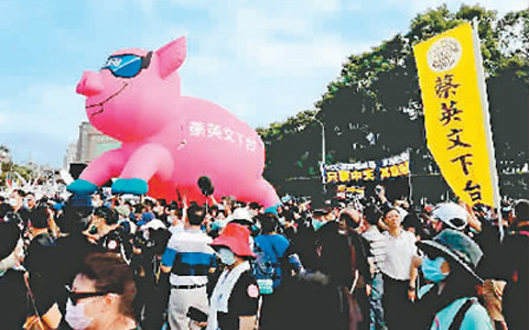 臺(tái)灣50多個(gè)團(tuán)體和政黨發(fā)起大游行,反對(duì)民進(jìn)黨當(dāng)局開(kāi)放美國(guó)瘦肉精(萊克多巴胺)豬肉入境,抗議關(guān)閉中天新聞臺(tái)。(圖片來(lái)源:臺(tái)媒)