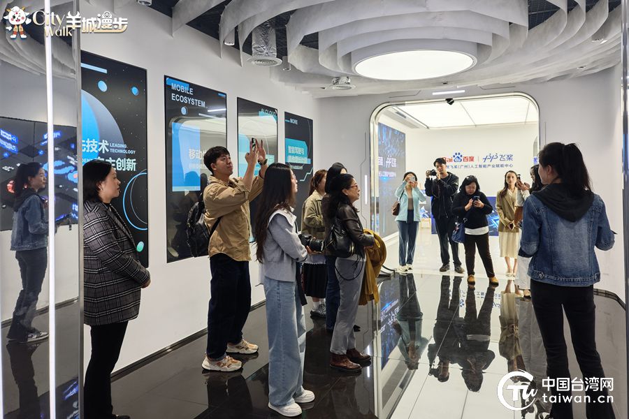 兩岸暨港澳媒體參訪團(tuán)到百度飛槳(廣州)人工智能產(chǎn)業(yè)賦能中心參觀交流。(中國臺灣網(wǎng)記者 張亞靜 攝)