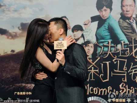 《決戰(zhàn)剎馬鎮(zhèn)》的新聞發(fā)布會(huì)上,孫紅雷、林志玲在媒體面前上演了一場“曖昧秀”(資料圖片)