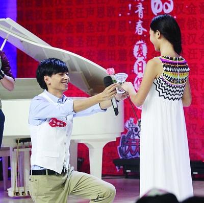 “快男”熱門選手左立曾說,進(jìn)入10強(qiáng)就向女友熊小玥求婚,昨天他終于兌現(xiàn)諾言,在《天天向上》的錄制現(xiàn)場(chǎng),單膝跪地向女友成功求婚。左立的誓言感動(dòng)了在場(chǎng)所有觀眾:“今后無論發(fā)生什么我都會(huì)在你身邊,我會(huì)變得更加強(qiáng)大,賺更多錢!保ㄐ侣勬溄樱