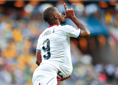 昨日凌晨進(jìn)行的一場(chǎng)世界杯小組賽中,進(jìn)球的哥斯達(dá)黎加前鋒坎貝爾將皮球塞在球衣里,以“孕婦”的形象慶祝自己喜當(dāng)?shù),他的進(jìn)球也奠定了哥隊(duì)3比1爆冷逆轉(zhuǎn)烏拉圭。