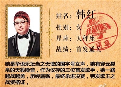 編者按:《我是歌手》進(jìn)入到第三季,第三位“歌王”將在今晚誕生。繼前兩季“歌王”都是男性,我們不妨大膽猜測(cè),這一季“歌王”桂冠應(yīng)該要輪給女歌手。并且再循一個(gè)規(guī)則,前兩季“歌王”羽·泉、韓磊都是首發(fā)歌手,這一季“歌王”也許還是出自于首發(fā)隊(duì)伍。所以你們猜,結(jié)果會(huì)是誰(shuí)?