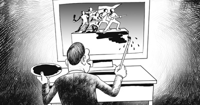 互聯(lián)網(wǎng)時(shí)代,歷史虛無主義并非只有一張面孔,在“時(shí)尚元素”的包裝下往往會(huì)粉墨登場(chǎng)——通過網(wǎng)絡(luò)“惡搞”、調(diào)侃,乃至丑化、滑稽化英雄先烈和歷史人物:賴寧是“官二代”,雷鋒玩“姐弟戀”,孫中山“包二奶”,岳飛是“大地主”,孔子是“喪家犬”……