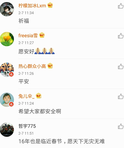 大陸網(wǎng)友紛紛為臺灣祈福。(圖片截取自新浪微博)