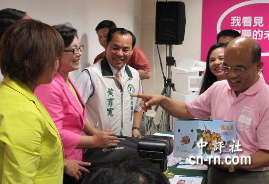 綠議員送上名為“龍之果”的龍眼時,蘇貞昌馬上澄清說“我沒有要當(dāng)皇帝,我只是要做事”。(圖片來源:中評社)