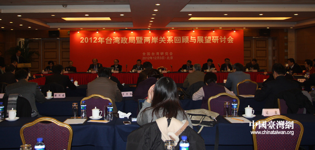 中國(guó)臺(tái)灣網(wǎng)12月3日北京消息 今天上午,由全國(guó)臺(tái)灣研究會(huì)舉辦的“2012年臺(tái)灣政局暨兩岸關(guān)系回顧與展望研討會(huì)”在北京舉行,來(lái)自兩岸的四十余位專家學(xué)者圍繞研討會(huì)主題進(jìn)行了深入探討。海峽兩岸關(guān)系協(xié)會(huì)副會(huì)長(zhǎng)王在希出席并致辭。