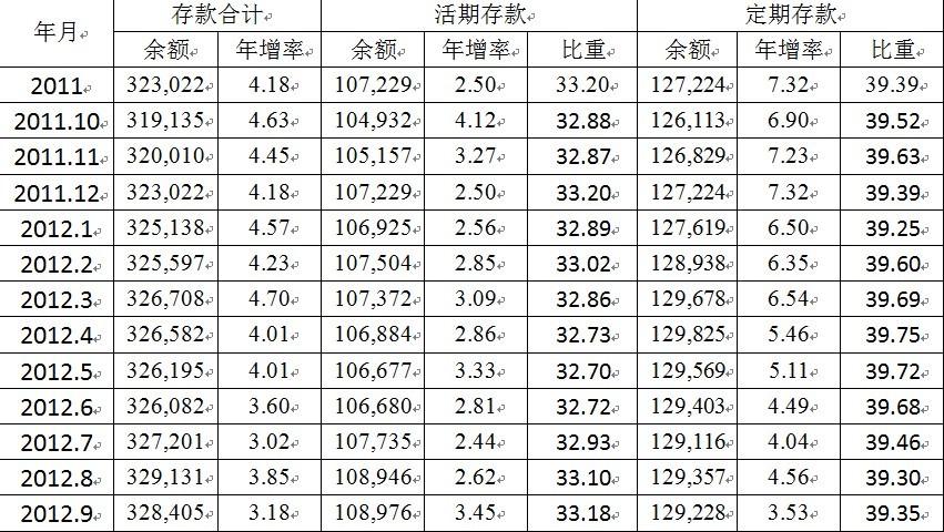 說明:表中“活期存款”和“定期存款”主要是指企業(yè)及個人存款