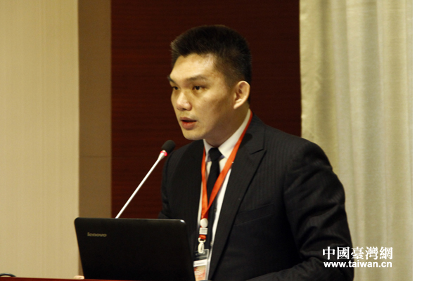 臺(tái)灣大學(xué)國(guó)家發(fā)展研究所的高宇成博士在論壇上作主題發(fā)言。(中國(guó)臺(tái)灣網(wǎng)記者 李杰 攝)
