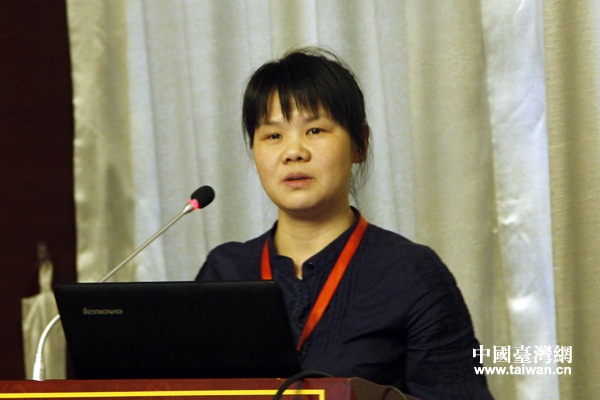 北京聯(lián)合大學(xué)臺灣研究院副研究員郭艷在論壇上發(fā)言。(中國臺灣網(wǎng)記者 李杰 攝)