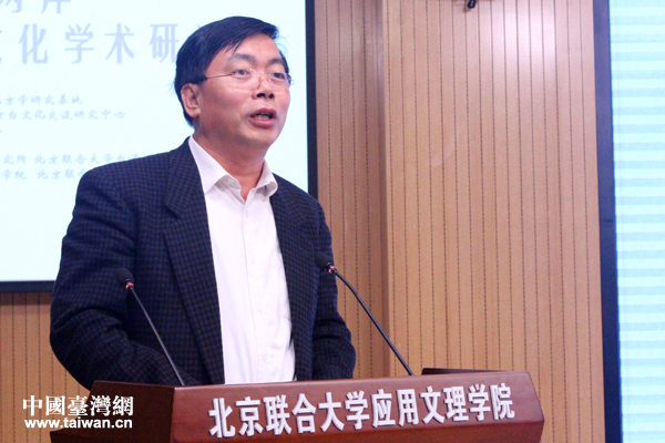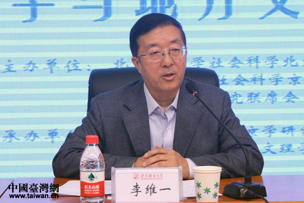 北京聯(lián)合大學(xué)臺(tái)灣研究院院長(zhǎng)李維一主持研討會(huì)開幕式。(中國(guó)臺(tái)灣網(wǎng) 張潔 攝)