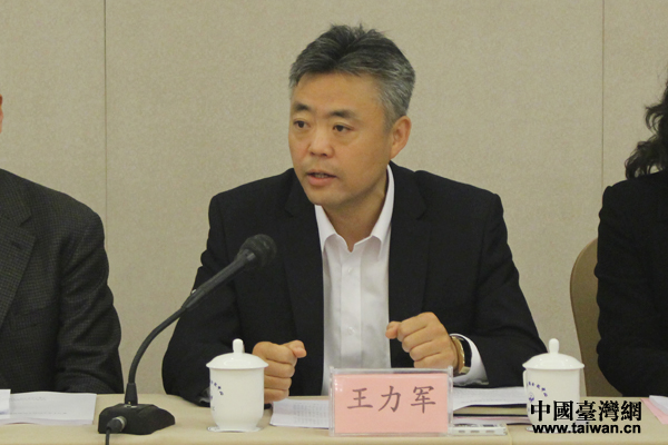 北京市臺辦主任王力軍在研討會上致辭。(中國臺灣網(wǎng) 張潔 攝)