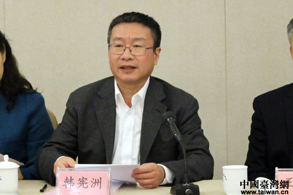 北京聯(lián)合大學(xué)黨委書記韓憲洲在研討會上致辭。(中國臺灣網(wǎng) 張潔 攝)