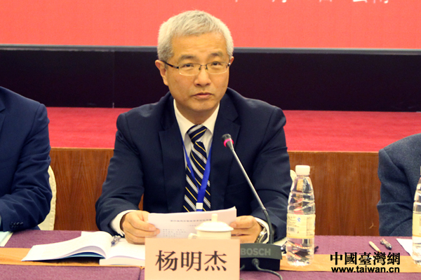 中國社會科學院臺灣研究所所長楊明杰在論壇開幕式上致辭。(中國臺灣網 張潔 攝)