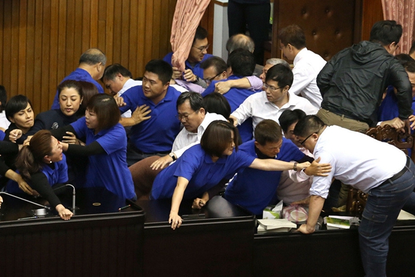 由于2018年臺(tái)灣縣市長(zhǎng)選舉日益臨近,島內(nèi)政黨出于選戰(zhàn)目的在議場(chǎng)激烈攻防。(圖片來(lái)源:網(wǎng)絡(luò))