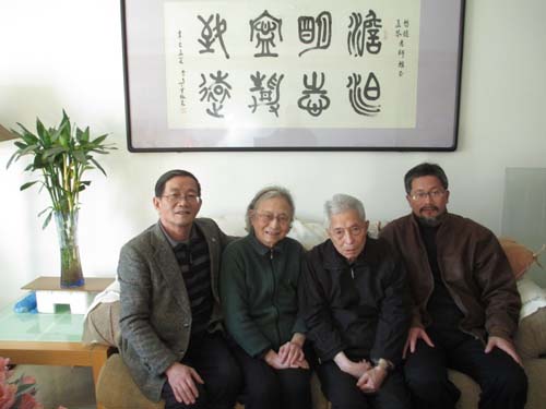 自左至右:徐博東、顧孟琴(徐懋德夫人)、徐懋德、藍博洲(2013年12月23日 攝于天津徐懋德寓所)