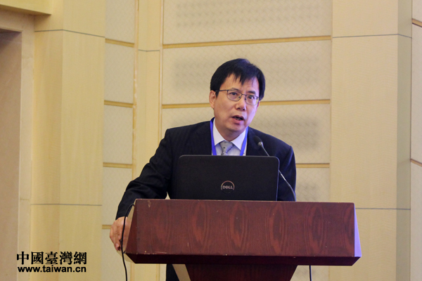 臺(tái)灣銘傳大學(xué)兩岸研究中心主任、教授楊開煌發(fā)表主題演講。(中國(guó)臺(tái)灣網(wǎng) 張潔 攝)