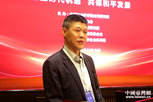 全國臺灣研究會執(zhí)行副會長王升在第六屆兩岸智庫學術論壇上致辭。(中國臺灣網(wǎng) 李杰 攝)