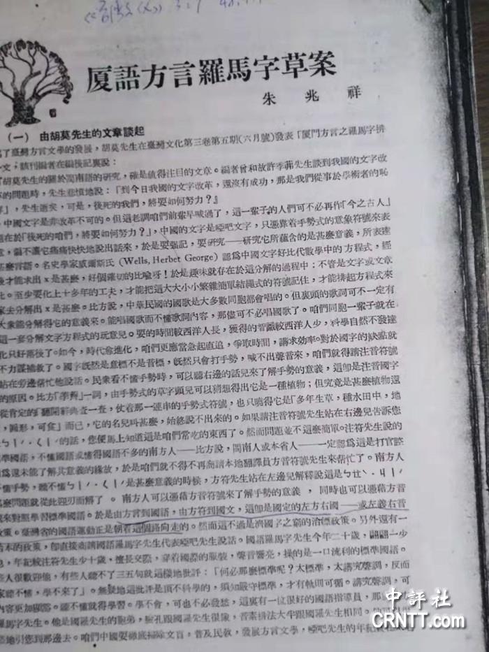 圖一,朱兆祥刊于《臺灣文化》的《廈語方言羅馬字草案》(來源:汪毅夫提供)