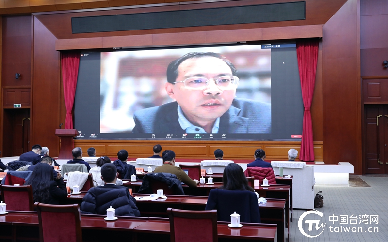 廈門大學(xué)臺灣研究院院長李鵬通過視頻連線方式進(jìn)行發(fā)言。(中國臺灣網(wǎng) 尹賽楠 攝)