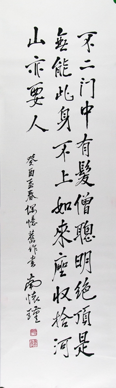 南師的青年時(shí)代,日本侵略者的鐵蹄正踐踏中國。國破山河碎,神州大地已難以安放一張讀書的課桌!捌咂呤伦儭焙螅蠋熞闳蝗氪,考入中央陸軍軍官學(xué)校,并任教官。然而,仿佛天注定的文化使命在召喚,26歲那年,南師辭去教官職務(wù),入峨眉山大坪寺閉關(guān)讀大藏經(jīng)。在當(dāng)時(shí),讀大藏經(jīng)是可遇而不可求的,要讀此經(jīng)還必須出家。南師一生立愿,一不做官、二不出家。但是為了讀大藏經(jīng)接續(xù)中國文化,出了一次家。三年后讀通出關(guān),決然返俗。他以詩明志,“不二門中有發(fā)僧,聰明絕頂是無能。此身不上如來座,收拾河山亦要人!笔帐昂由揭嘁,青年南師要收拾的,不是那被侵略者踐踏的支離破碎的山川大地,而是要收拾在傳承中被歷代統(tǒng)治者篡改閹割,導(dǎo)致中華大地積貧積弱被侵略被污辱的中華文化,恢復(fù)中華文化這個(gè)曾經(jīng)燦爛無比的山川花園。