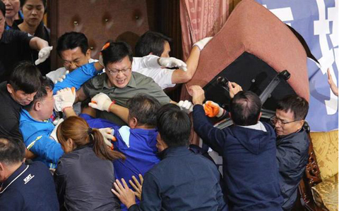 藍(lán)綠民意代表在立法機構(gòu)打作一團(tuán)。(圖片來源:網(wǎng)絡(luò))