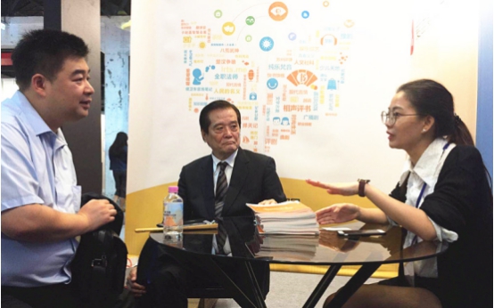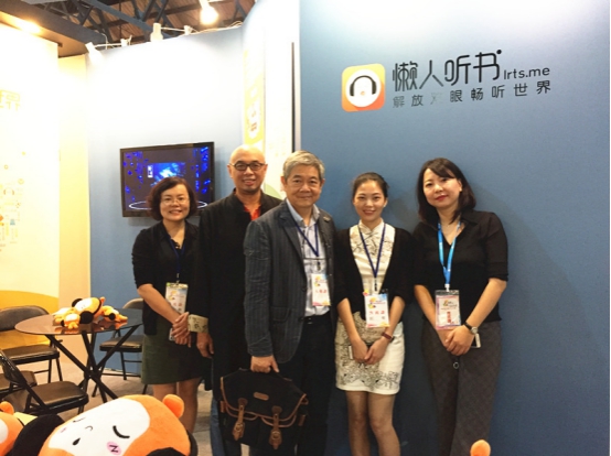 中華廣播電視節(jié)目制作商業(yè)同業(yè)公會理事長汪威江蒞臨懶人聽書展臺,與工作人員探討兩岸廣播節(jié)目傳播合作,并希望能懶人聽書將臺灣現(xiàn)有的文化資源引入大陸進(jìn)行二次傳播,同時把聽書這種新型的“閱讀”方式推向臺灣地區(qū)。