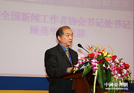 中華全國(guó)新聞工作者協(xié)會(huì)書(shū)記處書(shū)記顧勇華在開(kāi)幕式上致辭(中國(guó)臺(tái)灣網(wǎng) 鐘寶華 攝 )