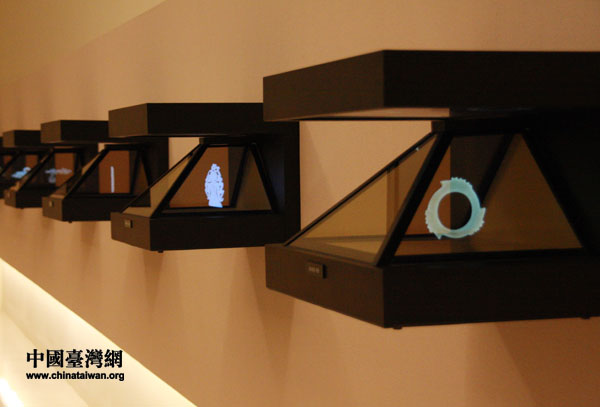 震旦館展示的玉器360度全息影像。(中國(guó)臺(tái)灣網(wǎng) 鐘寶華 攝)