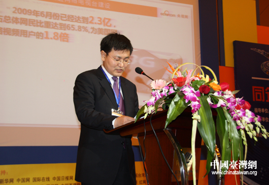 央視網(wǎng)副總經(jīng)理問永剛在會上發(fā)表《引領(lǐng)視頻潮流 推進網(wǎng)絡(luò)電視臺建設(shè)》的主題演講(中國臺灣網(wǎng) 陳寧 攝)