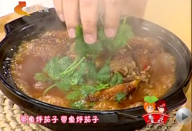本期節(jié)目主要內(nèi)容:主料:帶魚;配料:茄子;調(diào)料:醬油 料酒 花生油 蔗糖 千姜;做法:1、帶魚切段兒,然后用刀子沿著魚骨片成兩片。2、把茄子切成跟帶魚塊兒的長度差不多的段兒,然后切成片兒,擺在一片帶魚上。3、茄子的上面,在蓋上與這片帶魚相對應(yīng)的另外那片帶魚。照這個(gè)法子,把每兩片帶魚中間都夾上一層茄子片。4、煎鍋熱油,把夾了茄子的帶魚小心地放入鍋里,中火,兩面煎黃煎熟的時(shí)候(翻面的時(shí)候小心,以免里面的茄子掉出來),倒入買的現(xiàn)成的燒烤醬,加少許水,燒開,轉(zhuǎn)中火,晃動(dòng)鍋?zhàn),讓帶魚的兩面全都沾上汁水,水分將近的時(shí)候,盛出即可。(《我家廚房》 20111222 帶魚燉茄子)