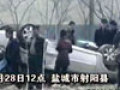 實(shí)拍轎車高速撞墻翻車 司機(jī)求救