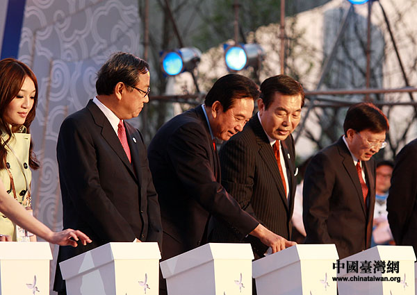 臺(tái)灣館的點(diǎn)燈祈福儀式巧妙地融合臺(tái)灣館獨(dú)有特色,將臺(tái)灣館主體天燈化身為儀式主舞臺(tái),由臺(tái)北世貿(mào)中心董事長(zhǎng)和臺(tái)灣文化總會(huì)會(huì)長(zhǎng)劉兆玄率領(lǐng)全體嘉賓一起點(diǎn)亮天燈。包括海協(xié)會(huì)會(huì)長(zhǎng)陳云林、國(guó)臺(tái)辦副主任葉克冬、海峽兩岸經(jīng)貿(mào)交流協(xié)會(huì)會(huì)長(zhǎng)李水林、中共上海市委常委楊曉渡、臺(tái)北故宮博物院院長(zhǎng)周功鑫、鴻海富士康董事長(zhǎng)郭臺(tái)銘、臺(tái)灣館代言人林志玲、陶晶瑩等兩岸嘉賓共同上臺(tái)參加了點(diǎn)燈祈福儀式。