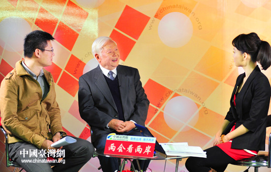 《兩岸常用字典》主編李行健教授(中),和人民日報社港澳臺采訪室記者杜榕(左),做客中國臺灣網(wǎng)聊一聊兩岸用語的差異和融合。