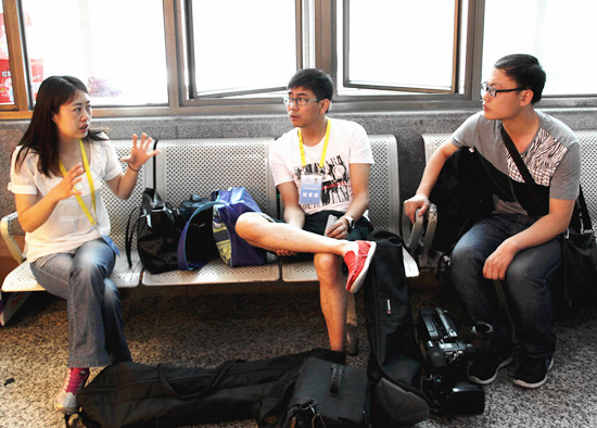 攝像師-焦愛民(左)攝像師-張寧(右)剛剛下火車