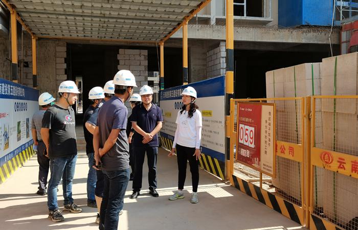 公司工會主席冷蕊帶隊,按照《云南建投集團(tuán)企業(yè)形象識別系統(tǒng)管理手冊》統(tǒng)一規(guī)范,對元江高橋居住小區(qū)項目進(jìn)行 “樹形象”專項檢查,進(jìn)一步落實集團(tuán)“四保一控一樹”管理要求,直七、安二、 五〇五參建單位的項目經(jīng)理及相關(guān)人員陪同檢查。檢查組一行分別對B、C區(qū)幾幢在建樓房的重難點、工程施工進(jìn)展、安全質(zhì)量管控等情況進(jìn)行了了解,同時對施工現(xiàn)場的各種標(biāo)識標(biāo)牌的大小、位置、字體等情況進(jìn)行了詳細(xì)檢查,隨后召開專項檢查會。