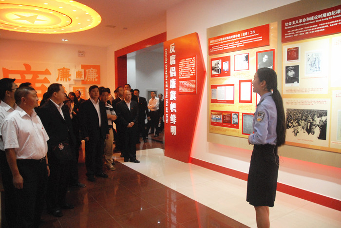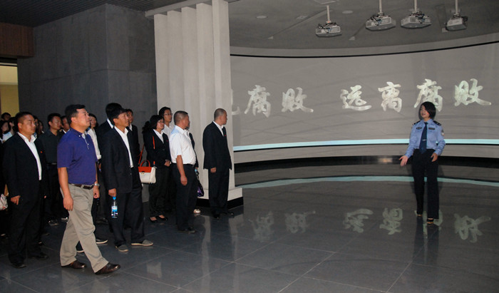活動伊始,各位領(lǐng)導(dǎo)干部在基地報告廳中觀看了警示教育專題片;隨后,大家在教育基地講解員的帶領(lǐng)下,參觀了基地警示廳、陽光廳。在警示廳,大家聽取了以人生政治、經(jīng)濟(jì)、自由、家庭、名譽(yù)、感情、健康7筆賬為主線的30多個案例。案例講述了少數(shù)領(lǐng)導(dǎo)干部一步步淪落為腐敗分子的原因及下場。在陽光廳,大家觀看了云嶺先鋒先進(jìn)事跡的激勵教育展板和不同歷史時期關(guān)于紀(jì)檢監(jiān)察查工作的輝煌歷程短片,通過一組組廉政典型人物的先進(jìn)事跡激勵著大家常思過、明是非。