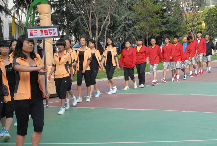 在歡快的樂曲中,各直管部職工排著整齊的方隊,邁著矯健的步伐、精神飽滿的經過主席臺,展示了五建人的良好精神風貌。
