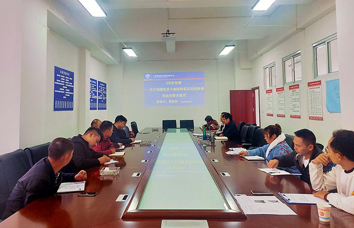 3月25日,第三直管項目部黨支部組織召開了節(jié)后復工集中黨風廉政教育專題會,直管部黨員干部、科室負責人、項目經(jīng)理參加會議。紀檢委員蘇偉帶領與會同志學習集團、公司關于今年黨風廉政建設的重點工作及相關要求,并集中學習了云南省紀委曝光的春節(jié)期間監(jiān)督檢查發(fā)現(xiàn)的十多個涉嫌違反中央八項規(guī)定及其實施細則精神,以及黨員、公職人員涉嫌違反社會治安管理秩序問題通報曝光等典型案例,進一步讓管理人員受警醒、明底線、知敬畏,…